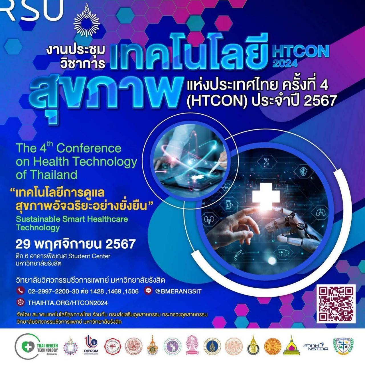 สมาคมเทคโนโลยีสุขภาพไทย (Thai Health Technology Association) ร่วมกับ วิทยาลัยวิศวกรรมชีวการแพทย์ และคณะพยาบาลศาสตร์ มหาวิทยาลัยรังสิต กองวิศวกรรมการแพทย์ กรมสนับสนุนบริการสุขภาพ กระทรวงสาธารณสุข กรมส่งเสริมอุตสาหกรรม บริษัทเอกชน จัดงานประชุมวิชาการเทคโนโลยีสุขภาพแห่งประเทศไทย ครั้งที่ 4 (HTCON2024) “เทคโนโลยีการดูแลสุขภาพอัจฉริยะอย่างยั่งยืน” ในงานประกอบด้วยการบรรยายพิเศษ การนำเสนอผลงานวิจัยจากสถาบันต่างๆ บูธจากภาคเอกชนและสถาบันการศึกษา การมอบรางวัลโรงพยาบาลงานวิศวกรรมชีวการแพทย์ดีเด่น ให้แก่โรงพยาบาลที่ส่งผลงานเข้าร่วมประกวดทั้งในระดับ Gold Award และ Silver Award 2024 ประจำปี 2567 ณ อาคาร Student Center มหาวิทยาลัยรังสิต